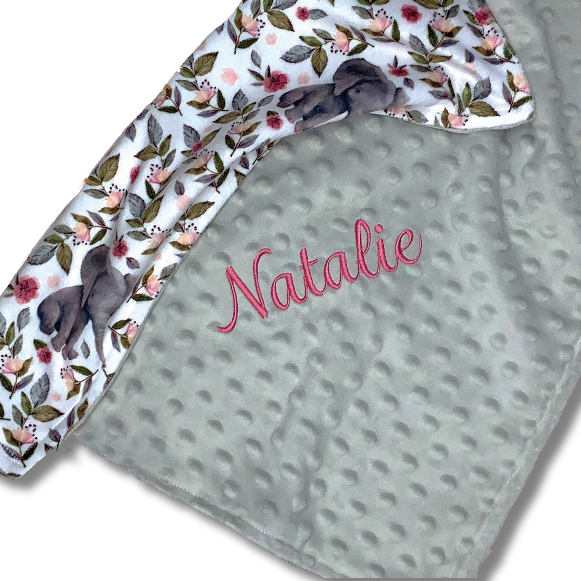 Baby Elephant Custom Minky Baby Blanket or Lovie, Personalized with Embroidery