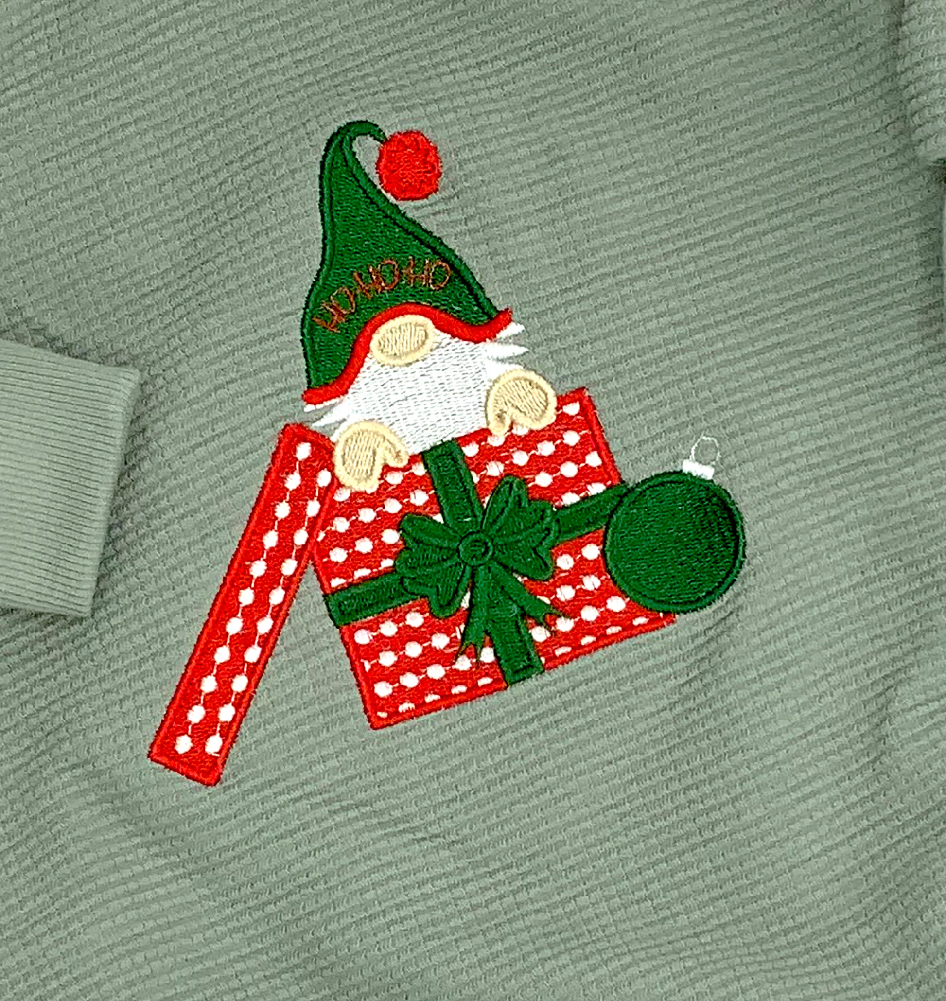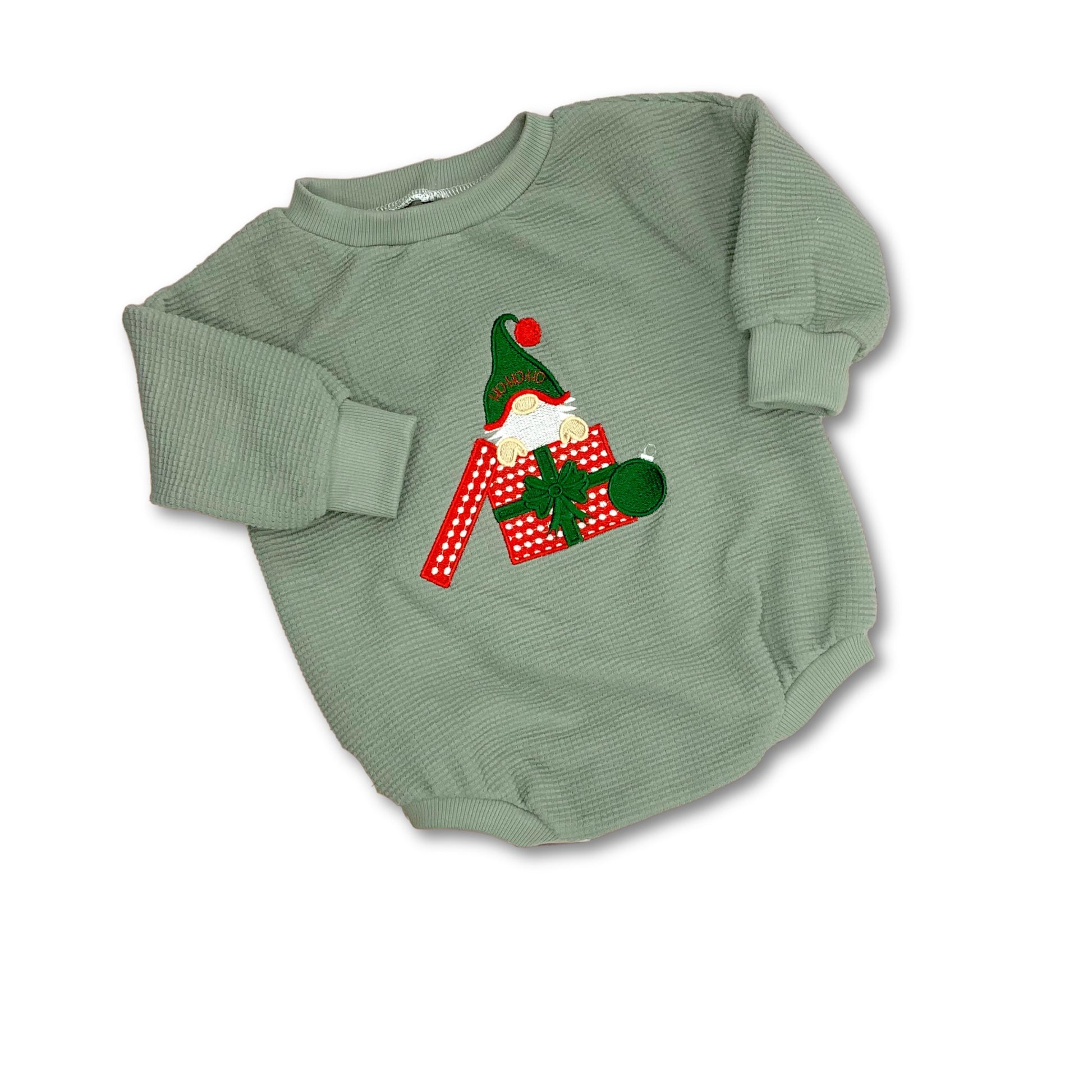 Christmas Gnome Embroidered Sweater Romper, 100% Organic Cotton