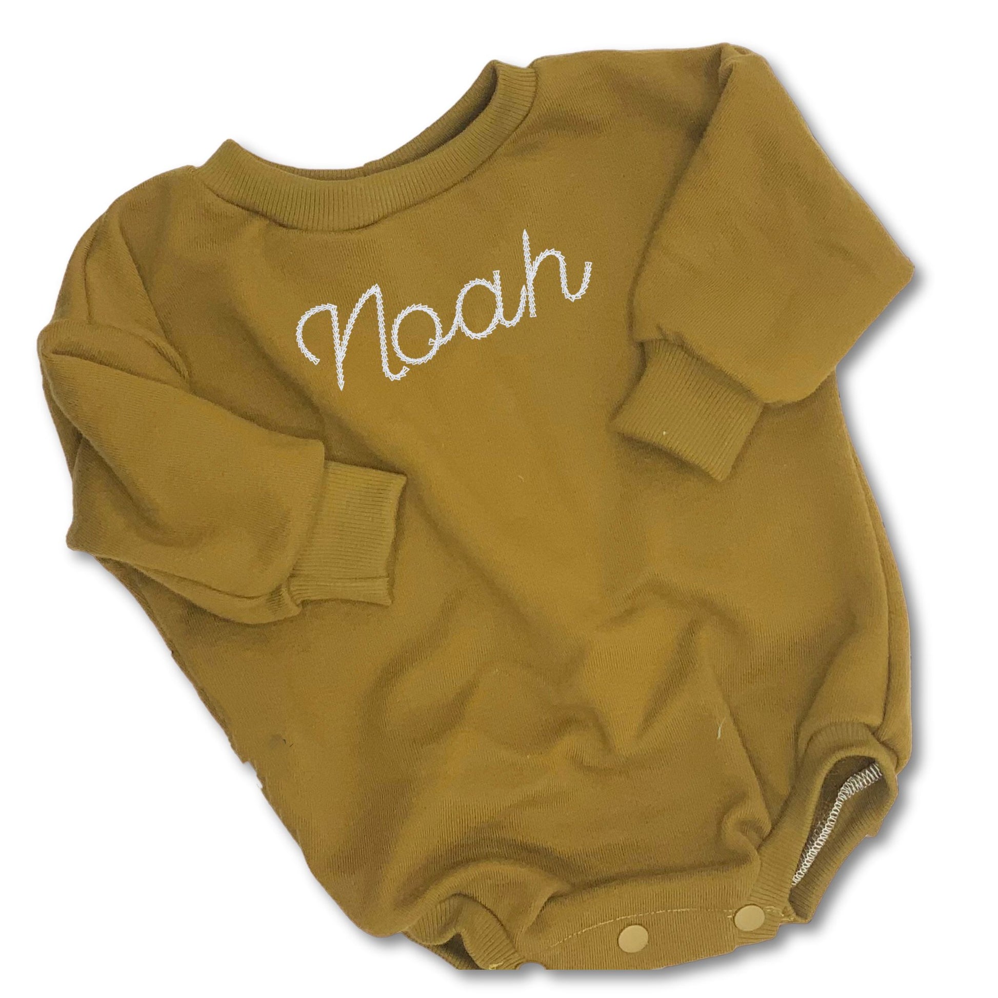 This organic french terry in a warm fall color is perfect for snuggle weather. This romper is oversized and super soft and squishy with a good amount of stretch to move with your active little ones.