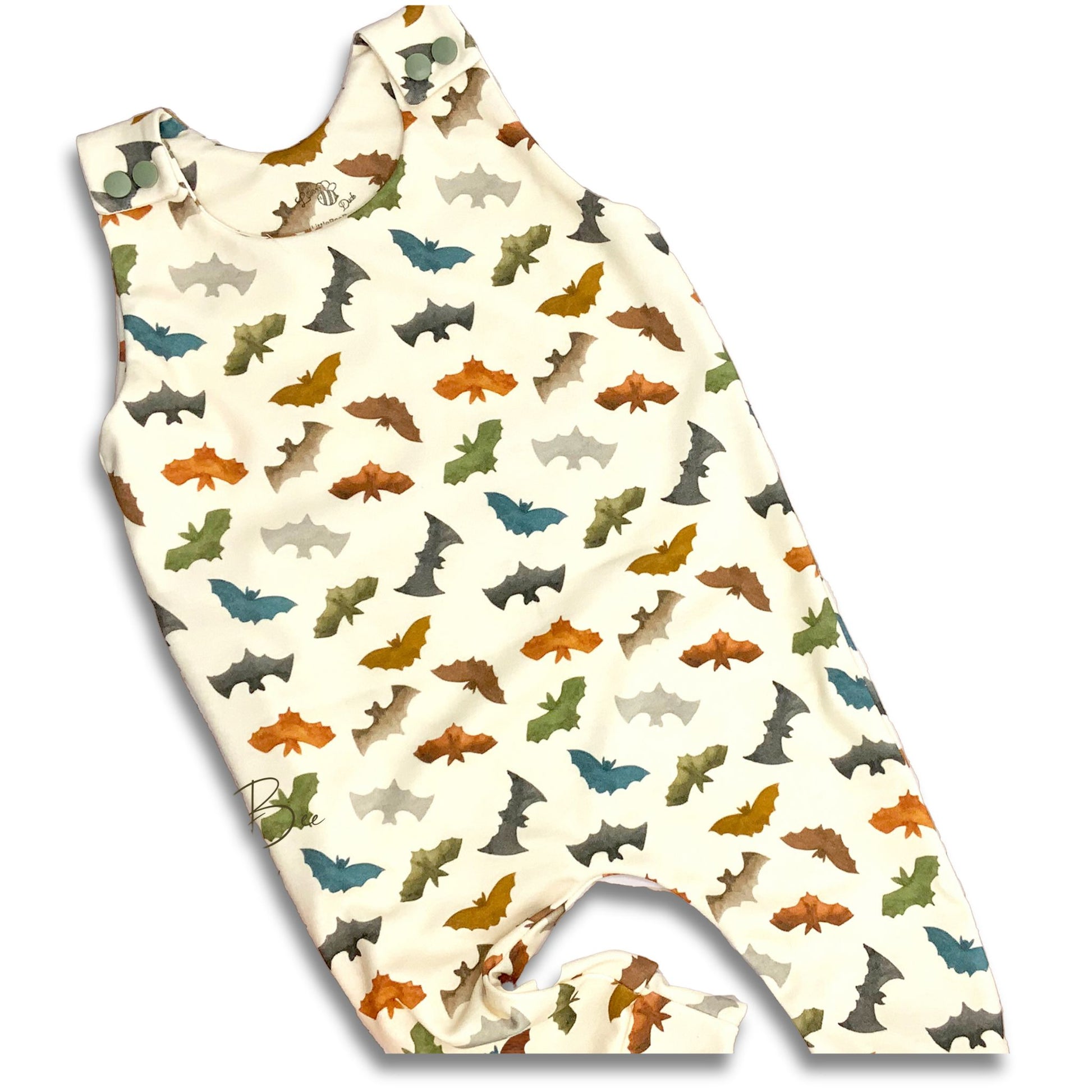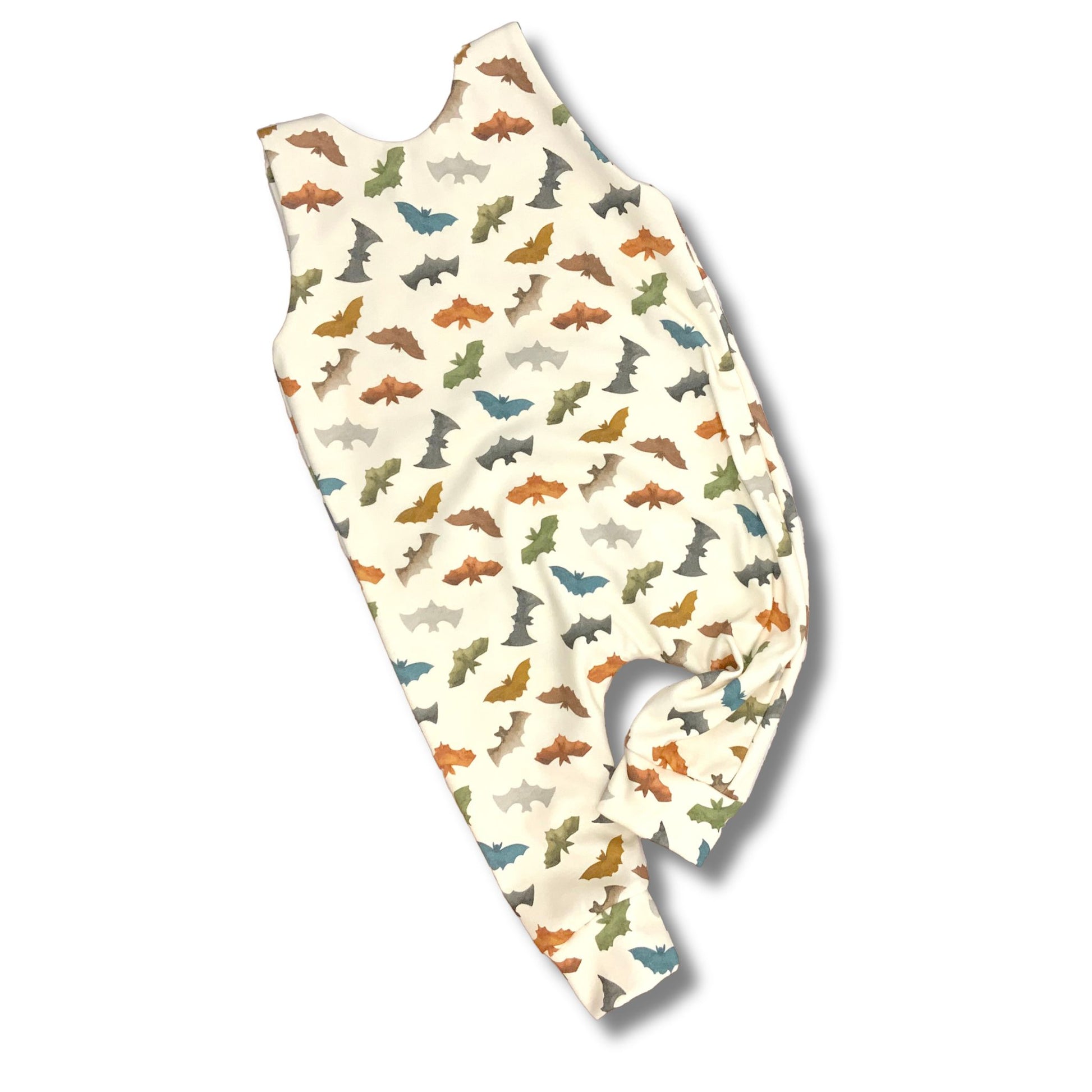 Celebrate Halloween in comfort with this handmade, gender-neutral long romper featuring a playful multicolored bat pattern. Crafted from soft, organic cotton, it ensures gentle care for sensitive skin while keeping your little one cozy during spooky festivities. Its breathable, natural fabric supports all-day comfort, making it perfect for both playtime and rest.