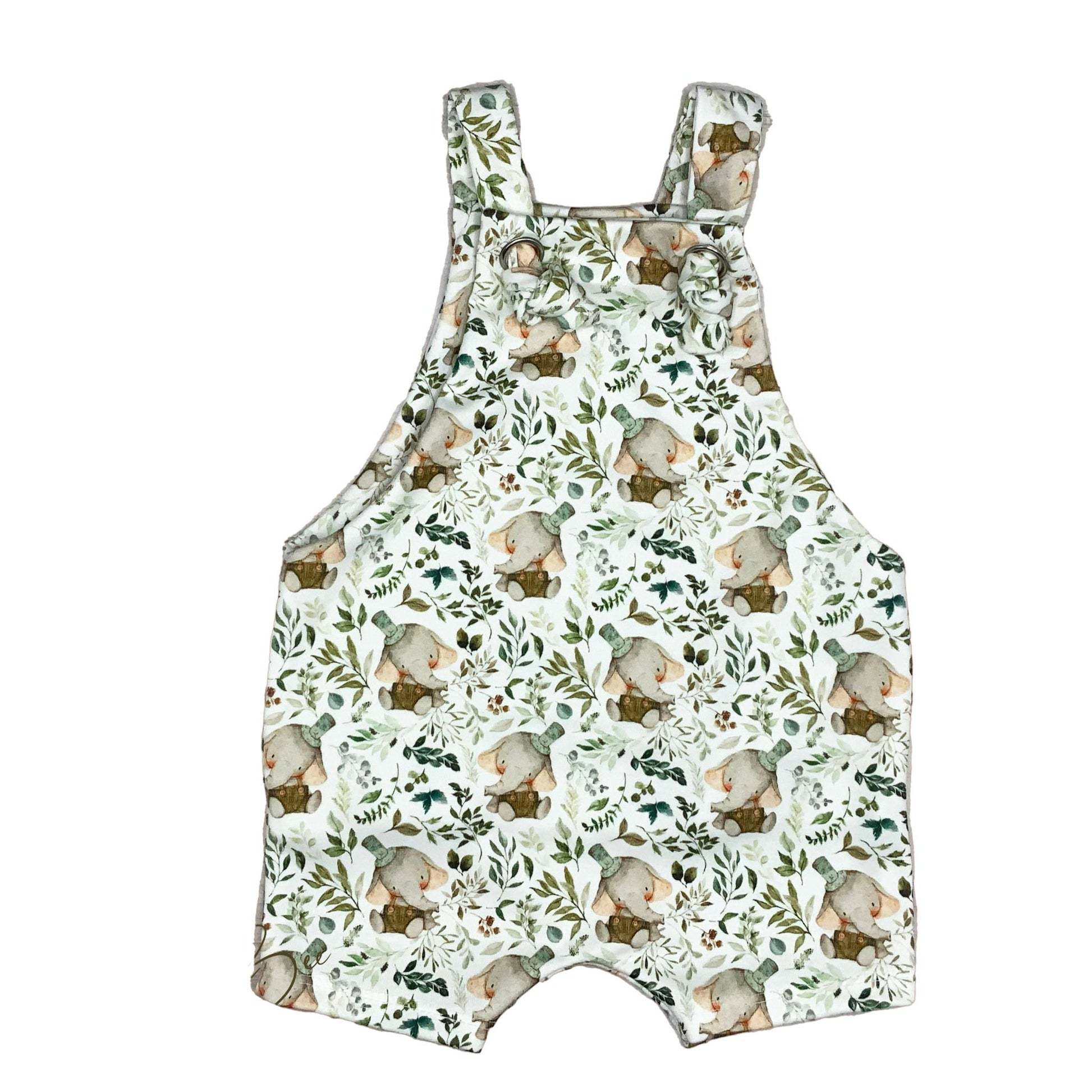Get this gender neutral baby elephant print knotted overalls for the little one for summer wear. This colorful print is made from 100% organic cotton making it not only fun but breathable, stretchy, soft but easy to care for. This is the only one available.