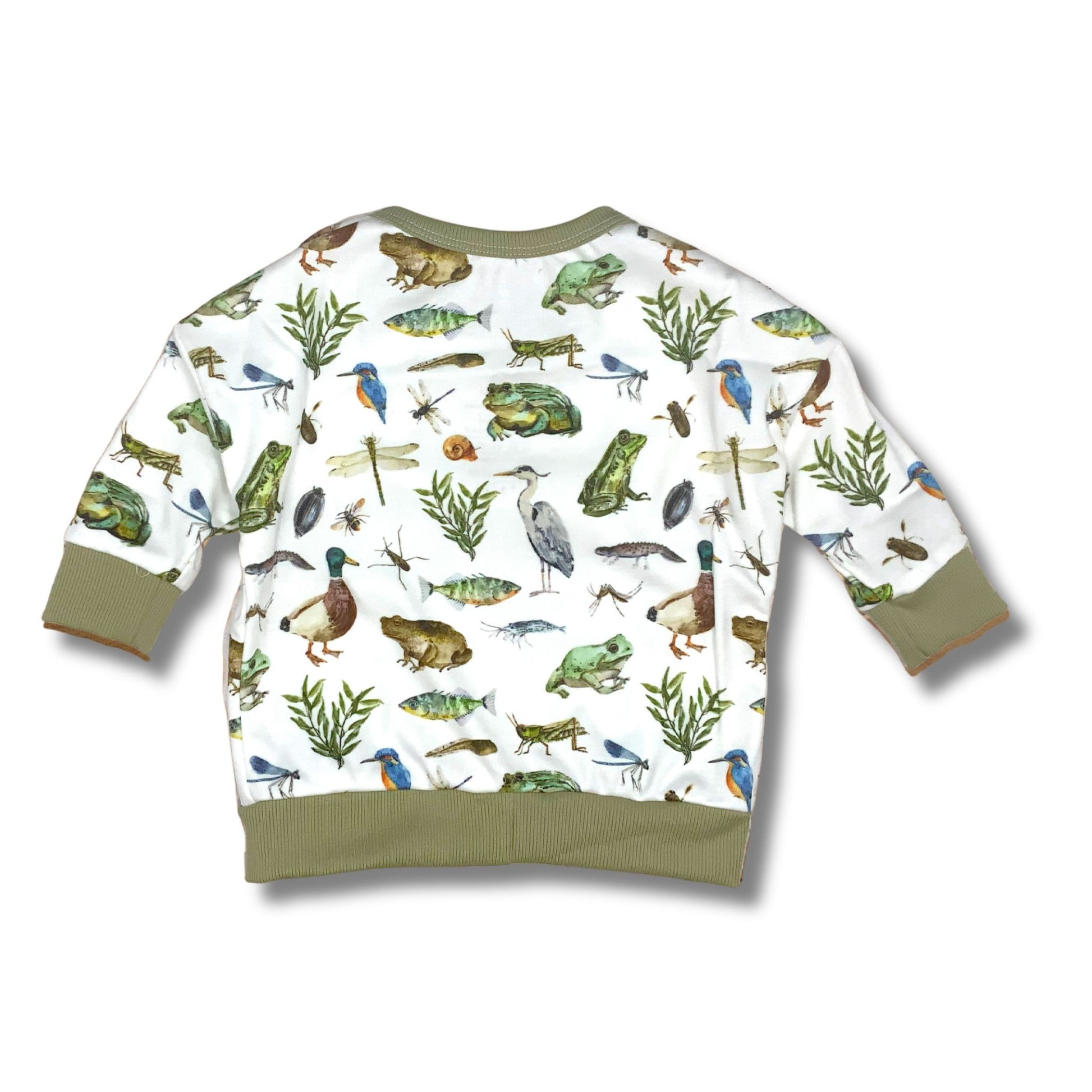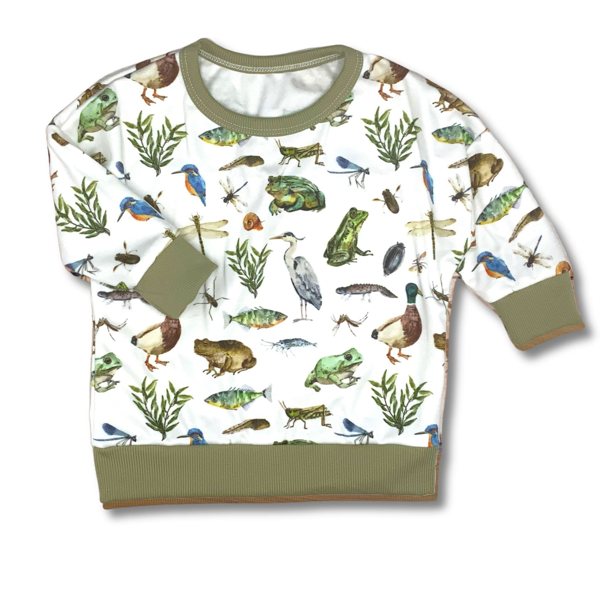 Unleash your child's wild side with our Organic Long Sleeve Dolman, featuring a fun critters of the waterways! The print is everything from frogs, dragonflies, ducks and more. Perfect for that outdoor loving little one. Made with all-natural, US milled fabrics, this top is not only eco-friendly, but also handmade for that extra special touch.