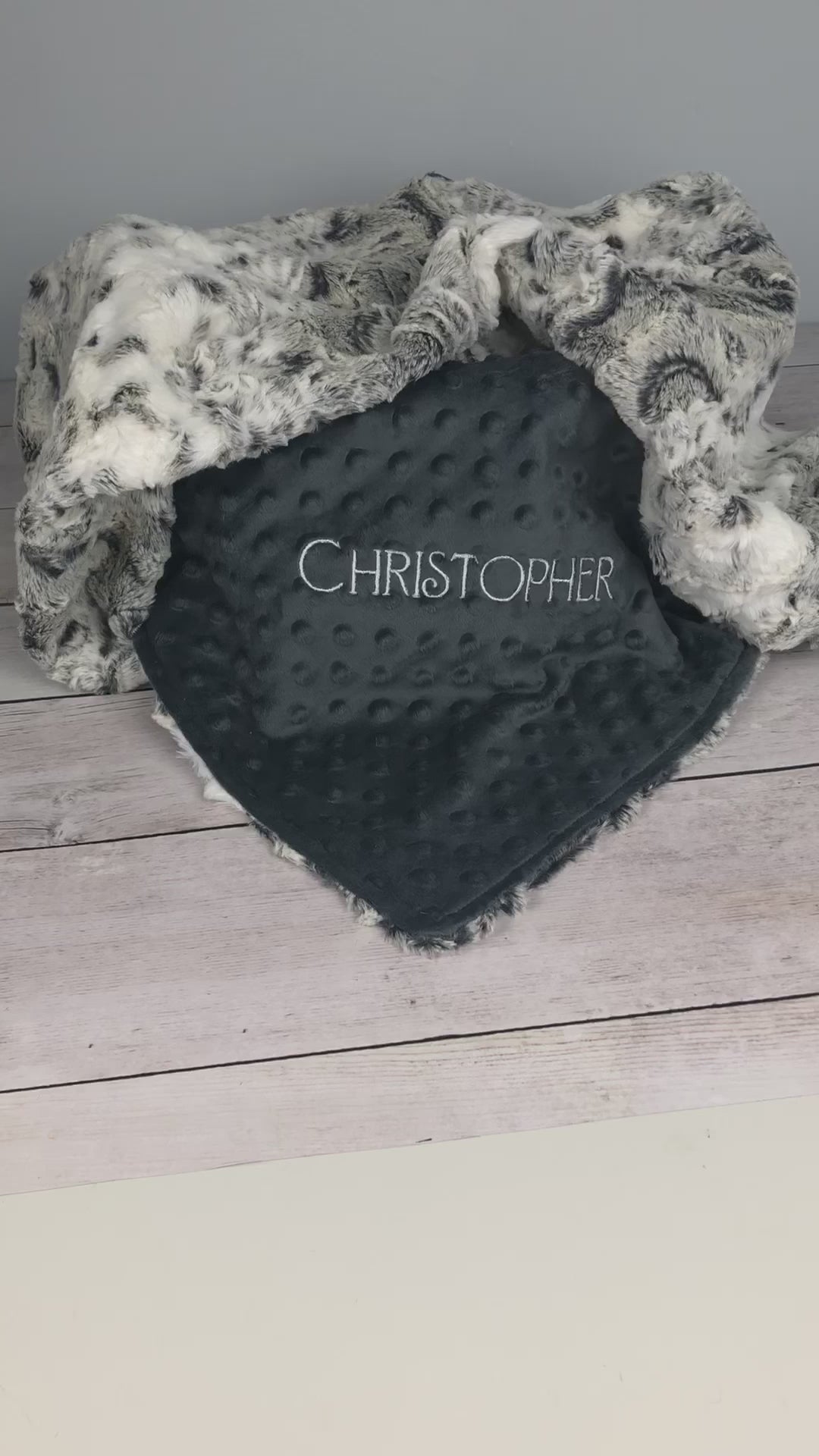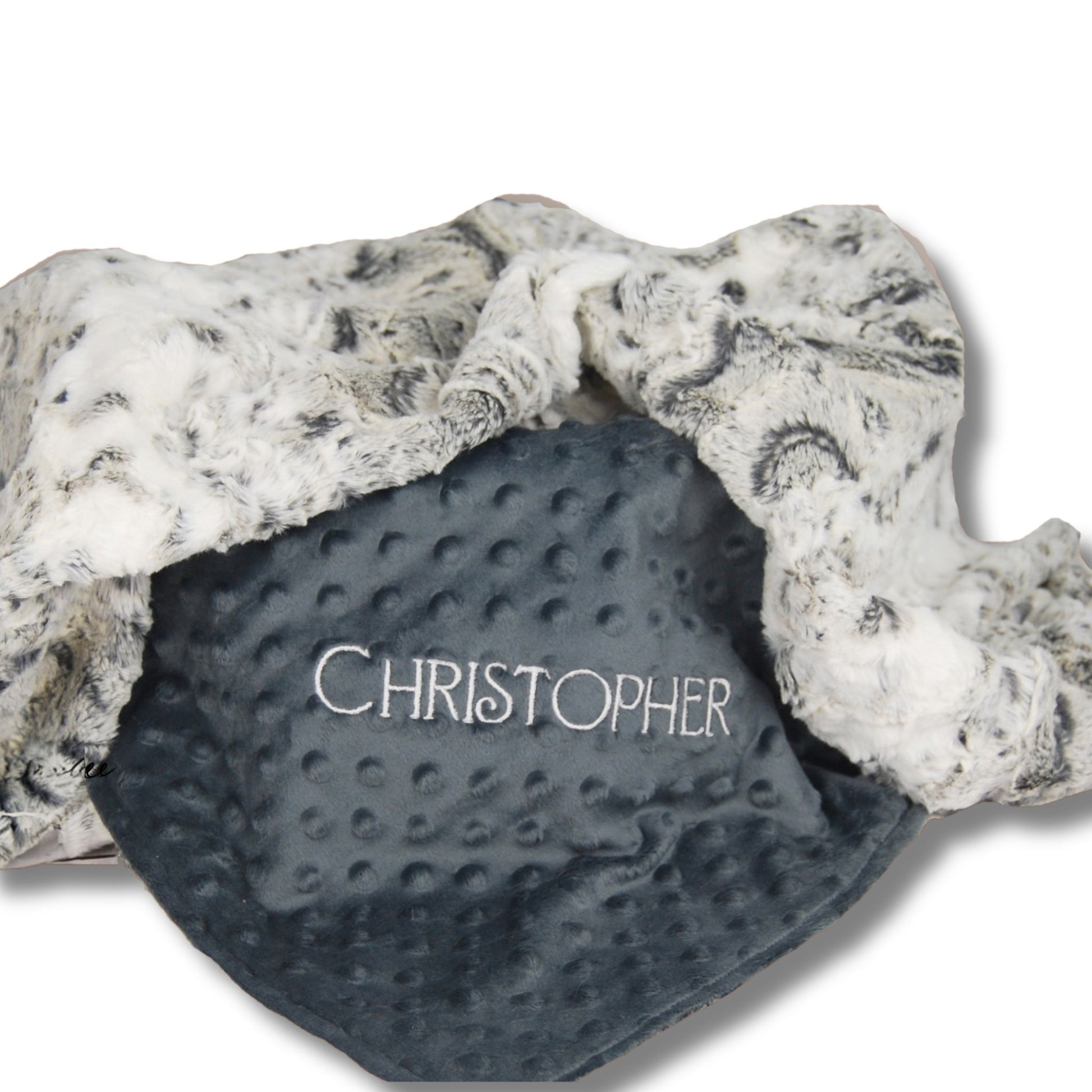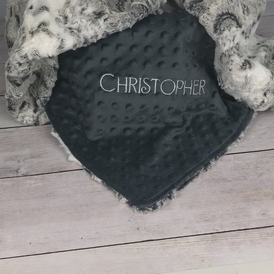 Experience superior softness with this personalized Snowy Owl Luxury Minky Baby Blanket. The plush minky fabric is combined with a beautiful snowy owl pattern and personalized embroidery. This luxurious gray baby blanket is perfect for cuddling and keeping your little one warm.